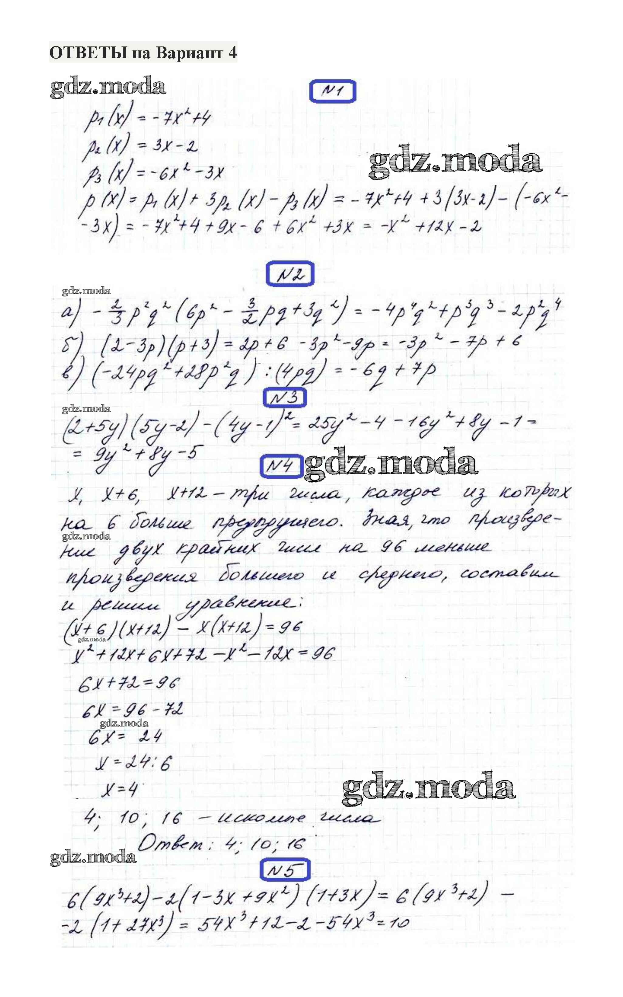 ОТВЕТ на задание № 4 Контрольные работы по Алгебре 7 класс Александрова