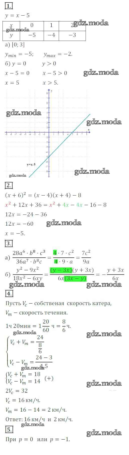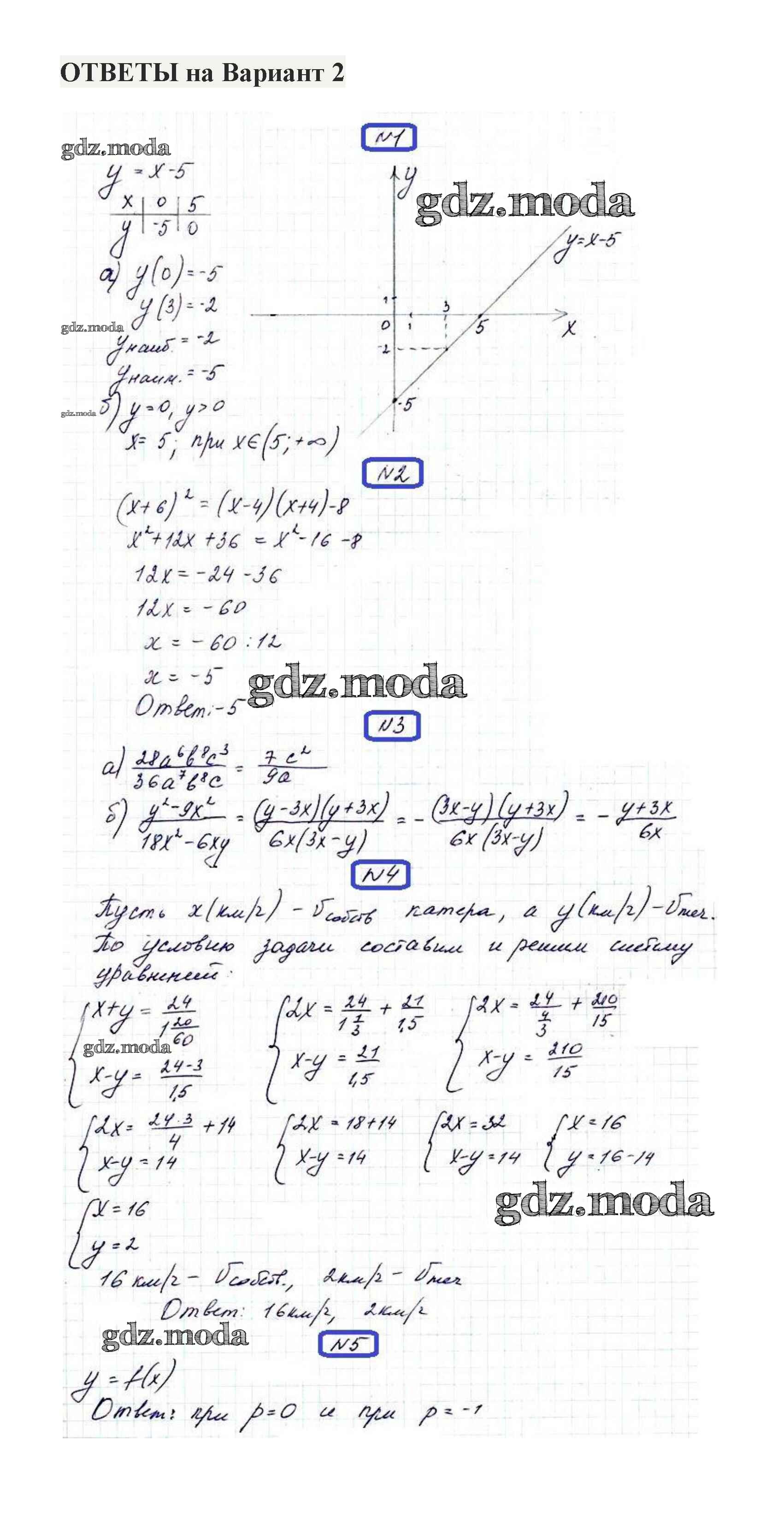 ОТВЕТ на задание № 2 Контрольные работы по Алгебре 7 класс Александрова