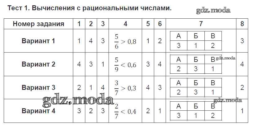 ОТВЕТ на задание № 1 Тематические тесты по Алгебре 7 класс Кузнецова
