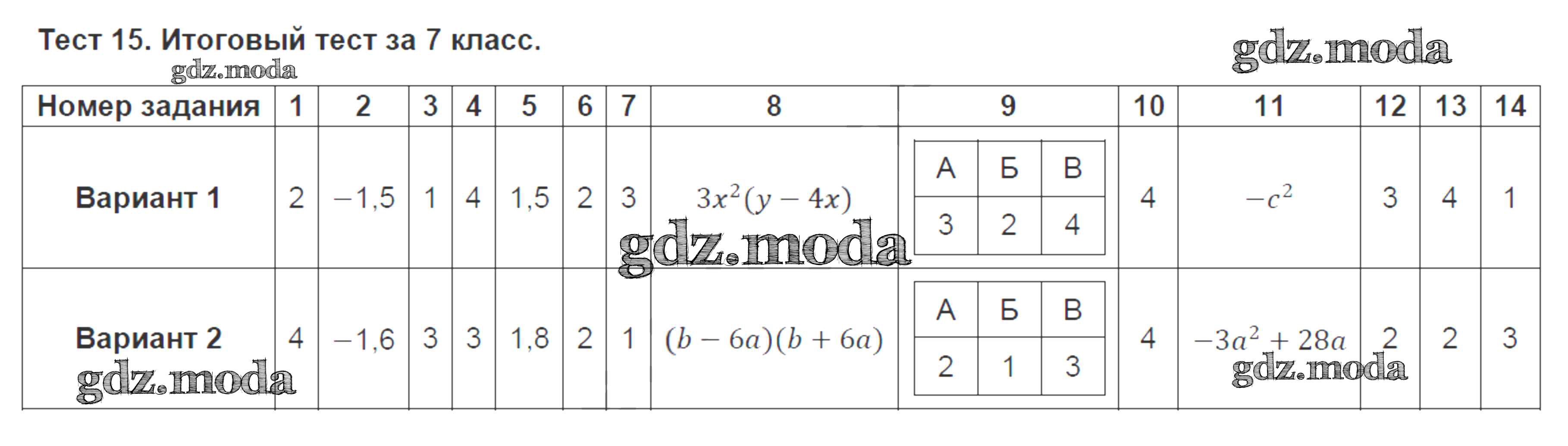 ГДЗ решение к заданию № 15 Алгебра 7 класс тематические тесты Кузнецова Л.В. Просвещение 2017 ФГОС бесплатно на гдз.мода!