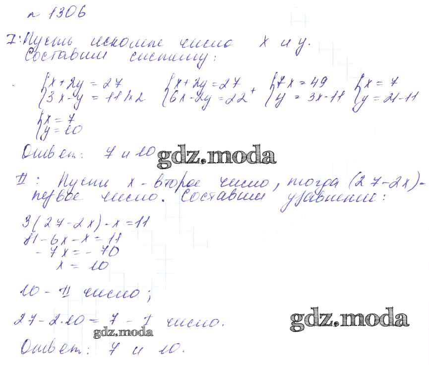 ОТВЕТ на задание № 1306 Учебник по Алгебре 7 класс Макарычев УМК Углубленный уровень