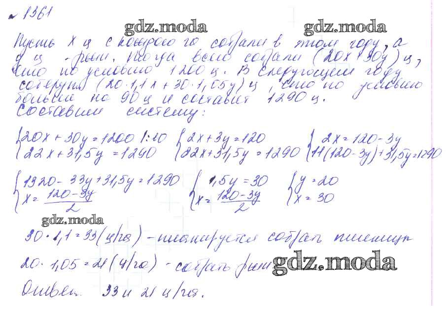 ОТВЕТ на задание № 1361 Учебник по Алгебре 7 класс Макарычев УМК Углубленный уровень