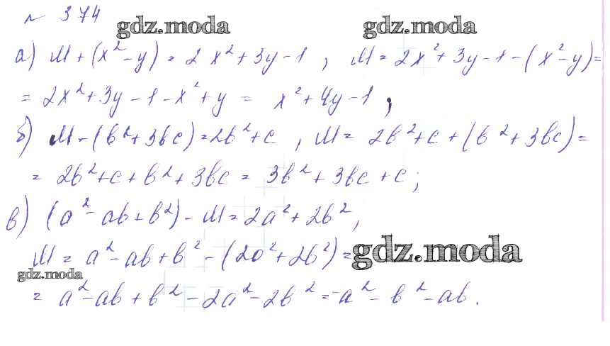 ОТВЕТ на задание № 374 Учебник по Алгебре 7 класс Макарычев УМК Углубленный уровень