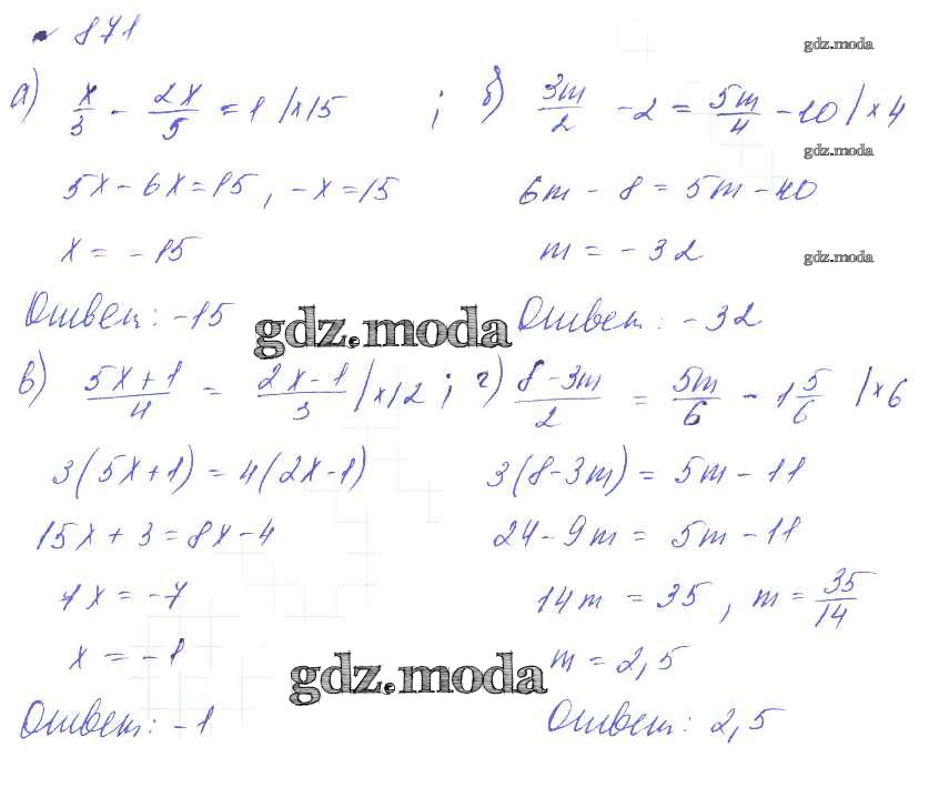 ОТВЕТ на задание № 871 Учебник по Алгебре 7 класс Макарычев УМК Углубленный уровень