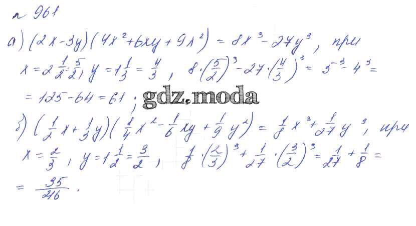 ОТВЕТ на задание № 961 Учебник по Алгебре 7 класс Макарычев УМК Углубленный уровень