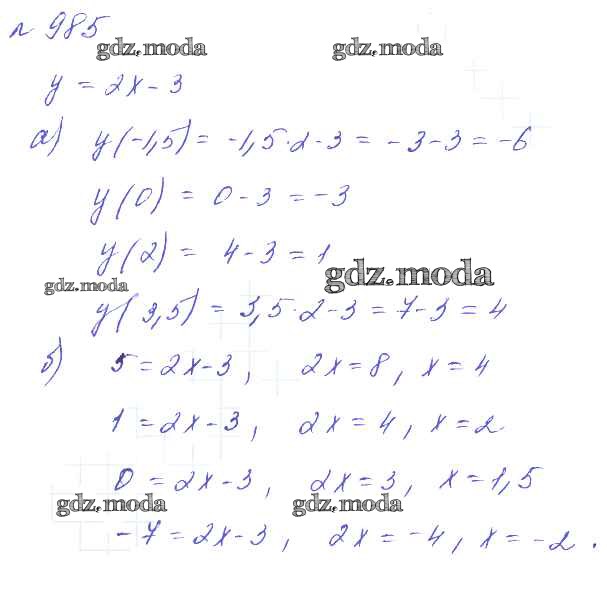 ОТВЕТ на задание № 985 Учебник по Алгебре 7 класс Макарычев УМК Углубленный уровень