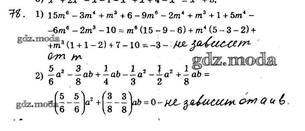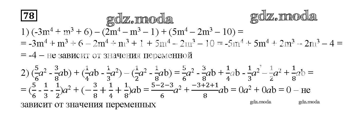 ОТВЕТ на задание № 78 Дидактические материалы по Алгебре 7 класс Мерзляк УМК