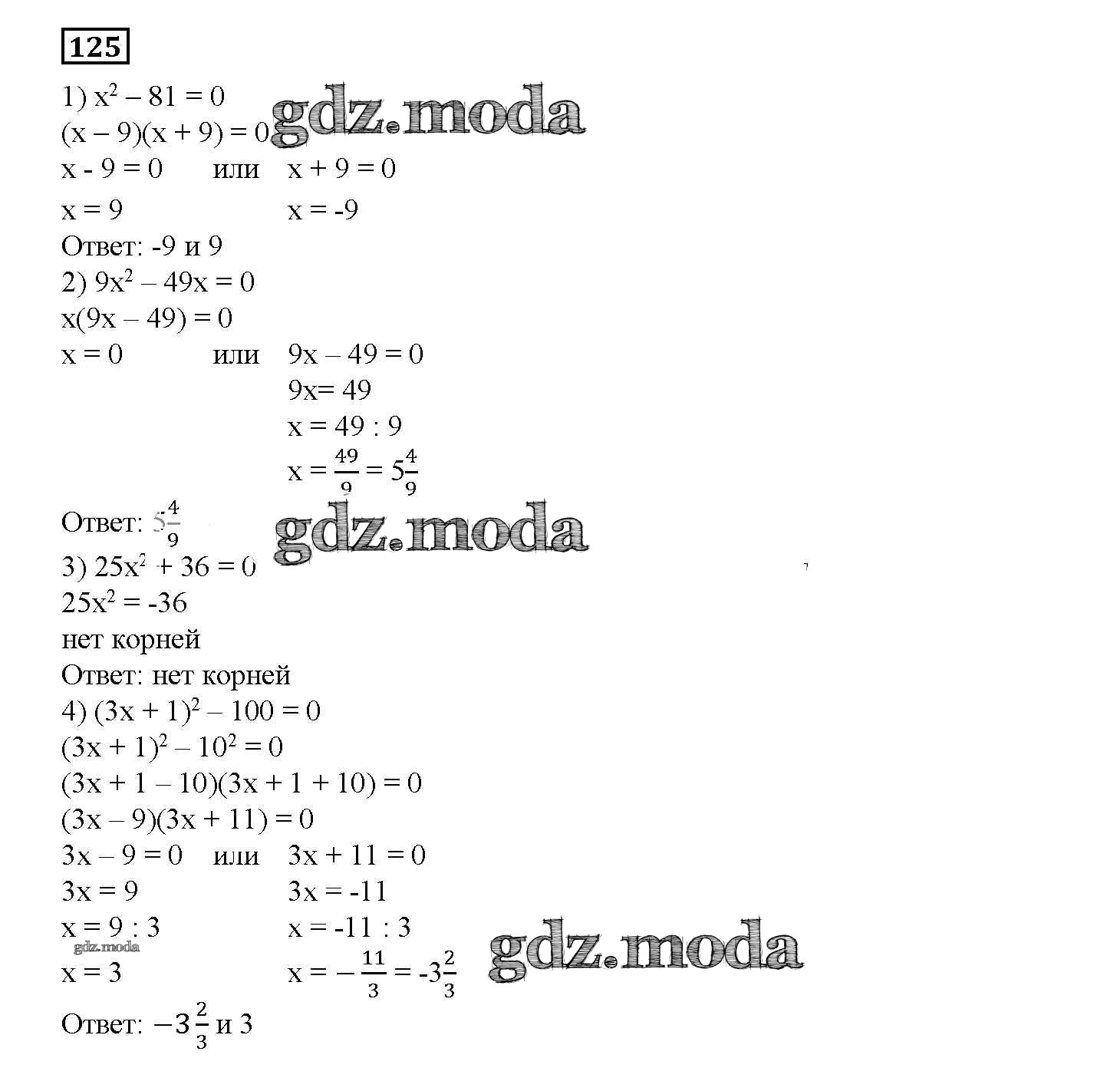 ОТВЕТ на задание № 125 Дидактические материалы по Алгебре 7 класс Мерзляк УМК