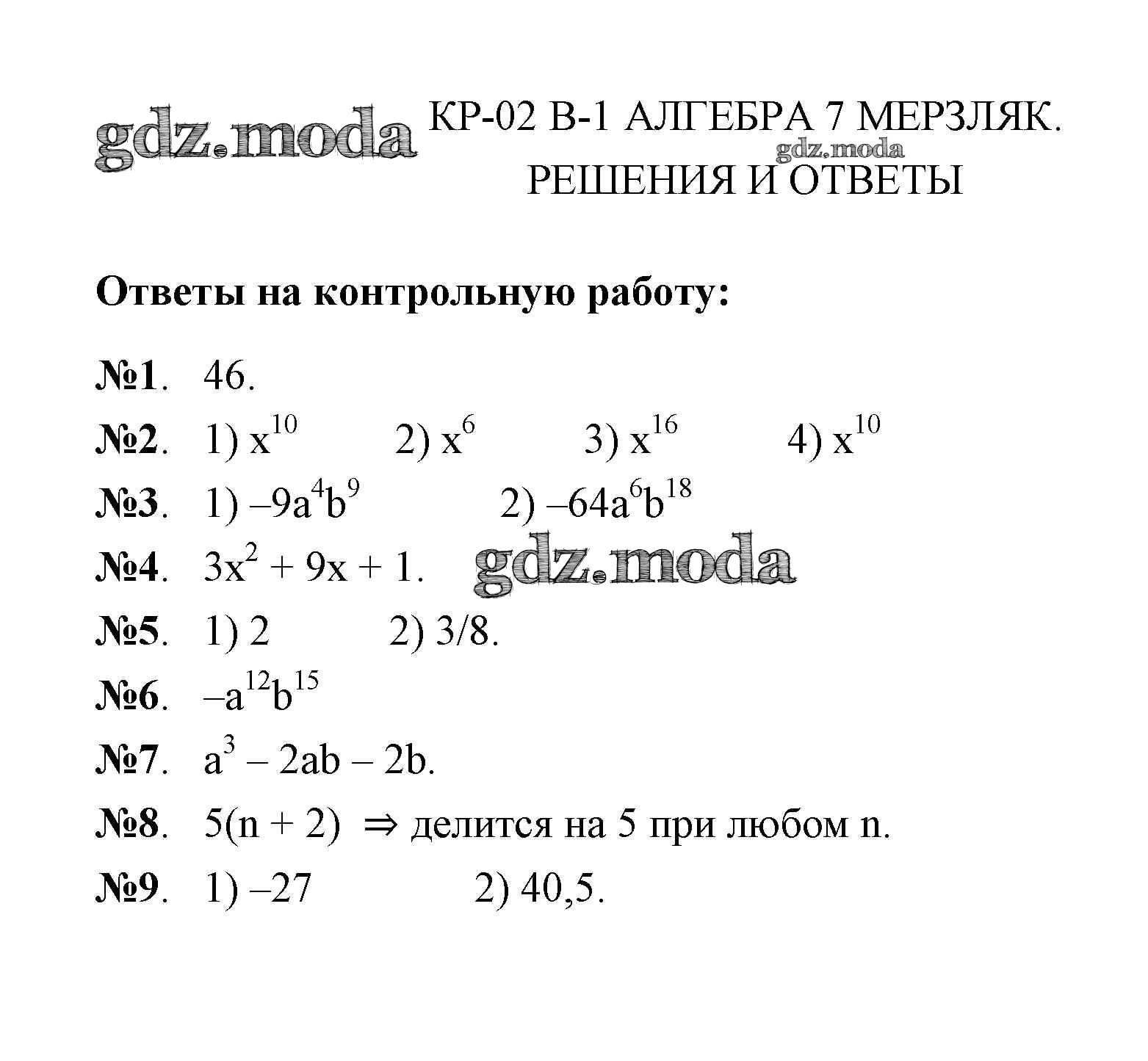 ОТВЕТ на задание № 1 Дидактические материалы по Алгебре 7 класс Мерзляк УМК