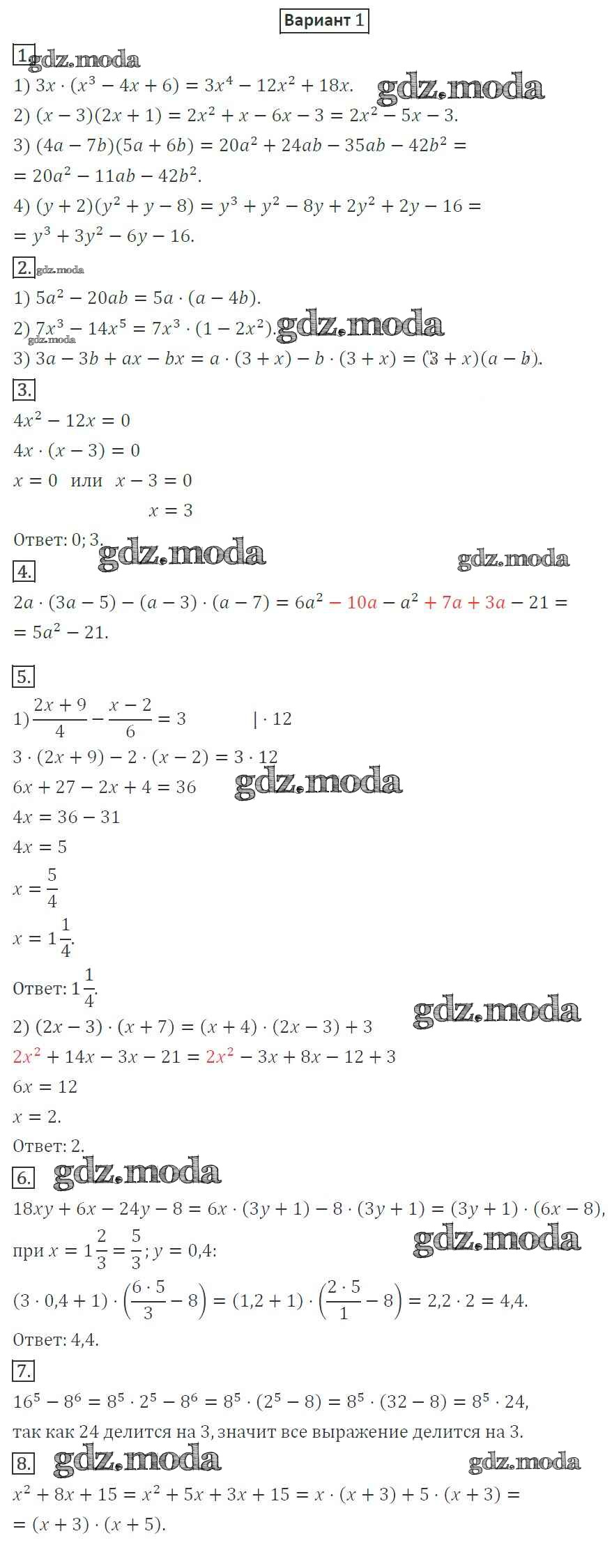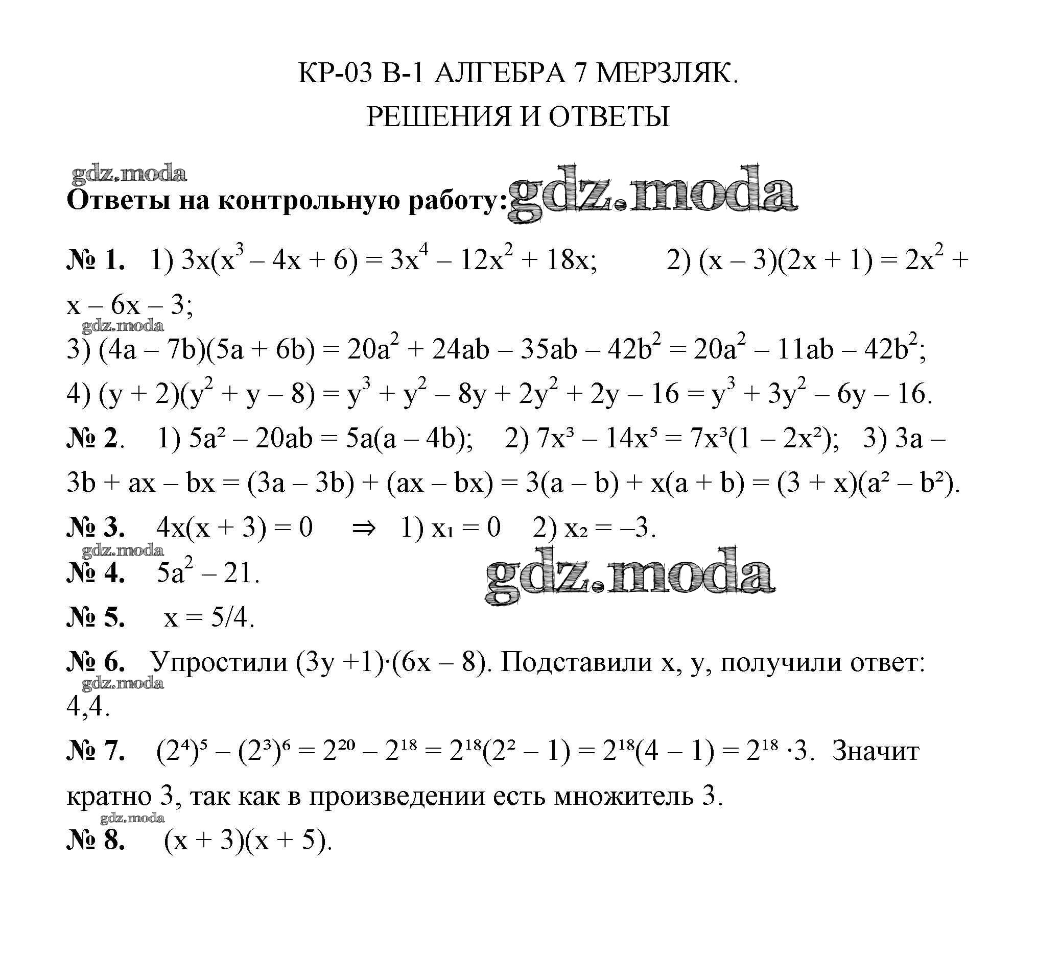 ОТВЕТ на задание № 1 Дидактические материалы по Алгебре 7 класс Мерзляк УМК