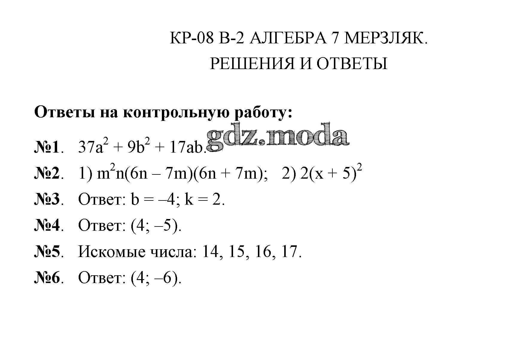 ОТВЕТ на задание № 2 Дидактические материалы по Алгебре 7 класс Мерзляк УМК