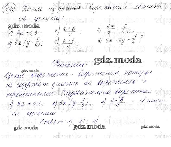 ОТВЕТ на задание № 10 Учебник по Алгебре 7 класс Мерзляк Алгоритм успеха Базовый уровень