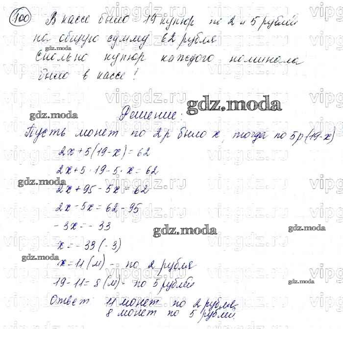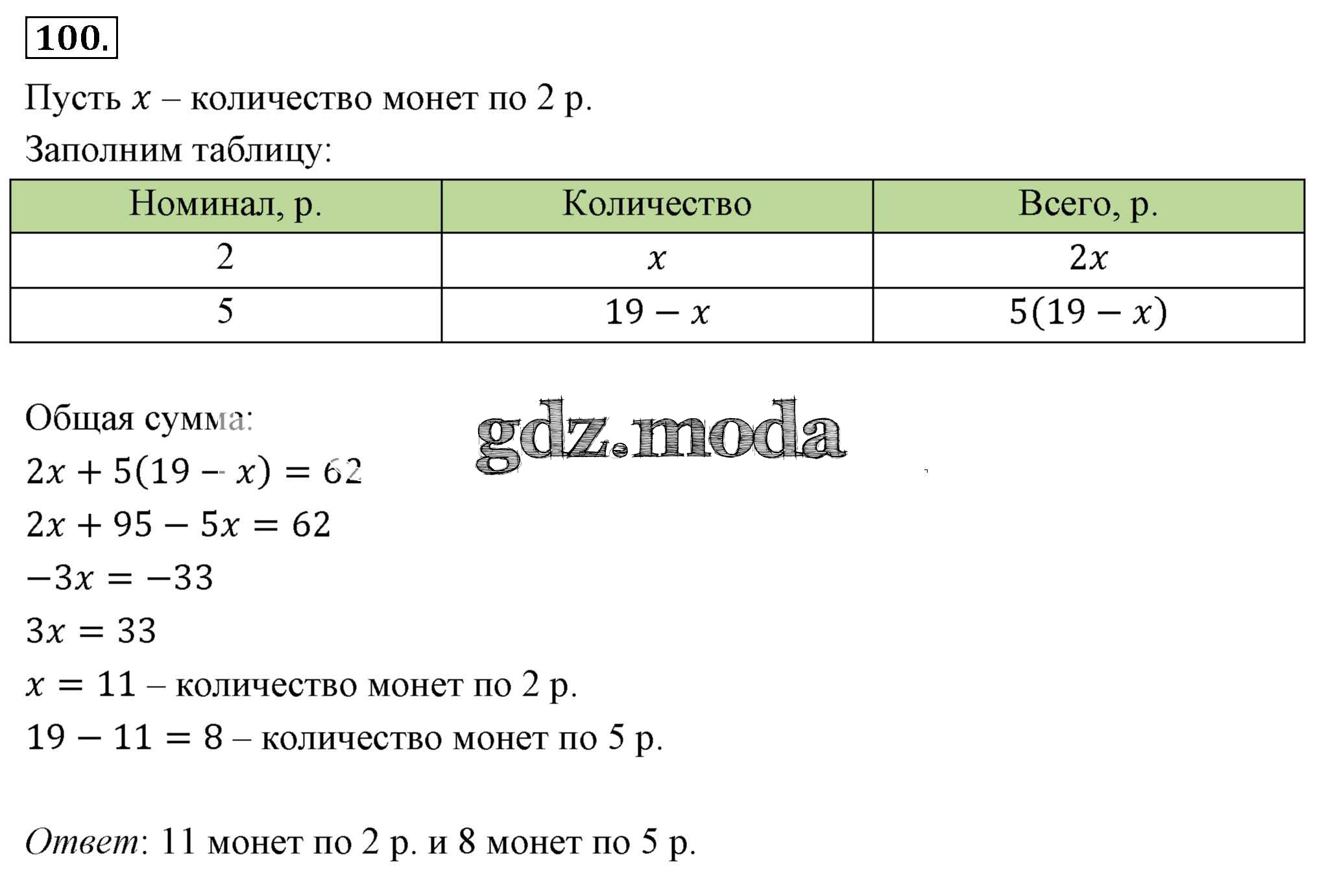 ОТВЕТ на задание № 100 Учебник по Алгебре 7 класс Мерзляк Алгоритм успеха Базовый уровень