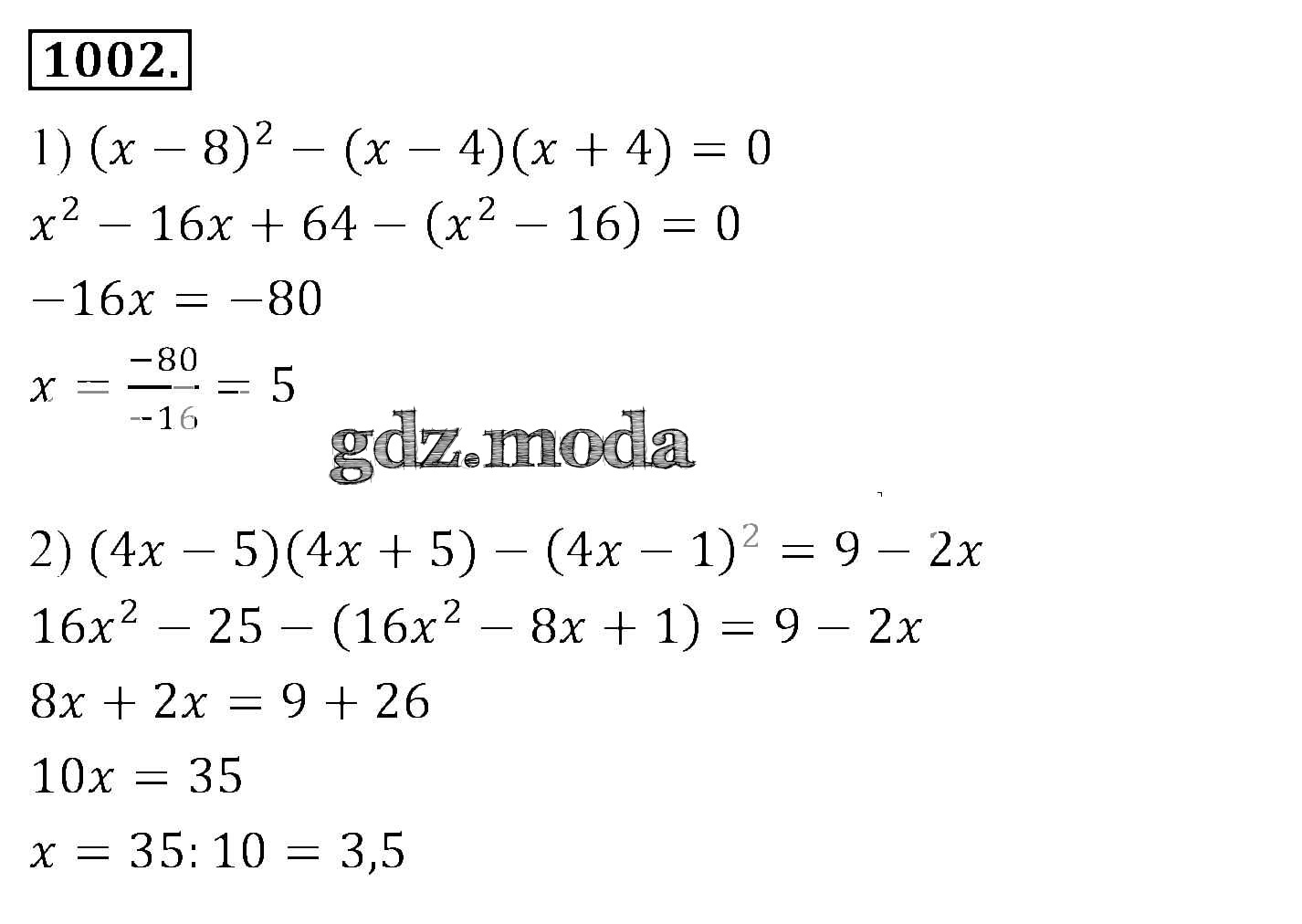 ОТВЕТ на задание № 1002 Учебник по Алгебре 7 класс Мерзляк Алгоритм успеха Базовый уровень