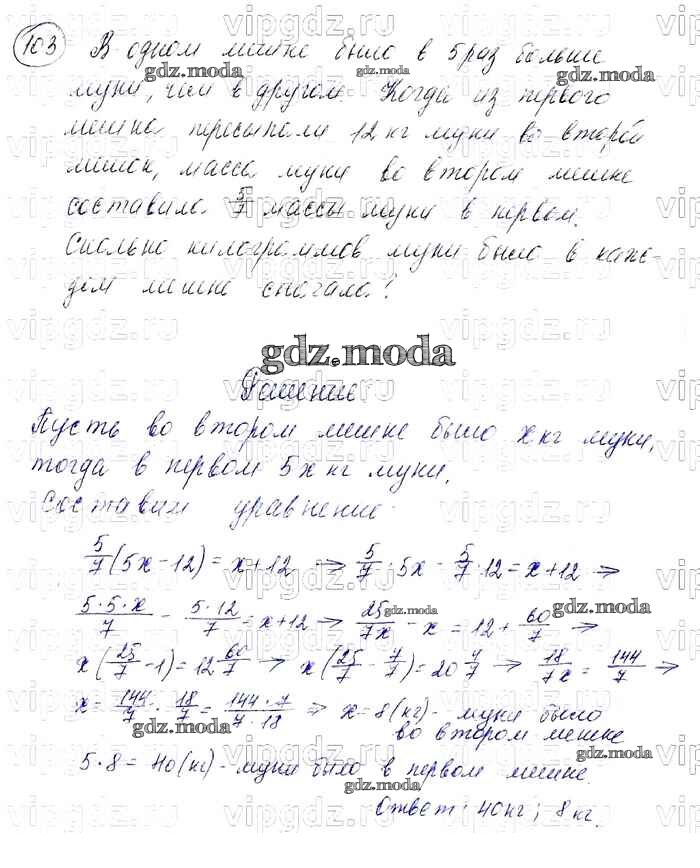 ОТВЕТ на задание № 103 Учебник по Алгебре 7 класс Мерзляк Алгоритм успеха Базовый уровень