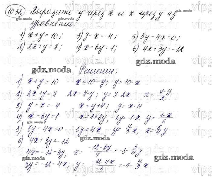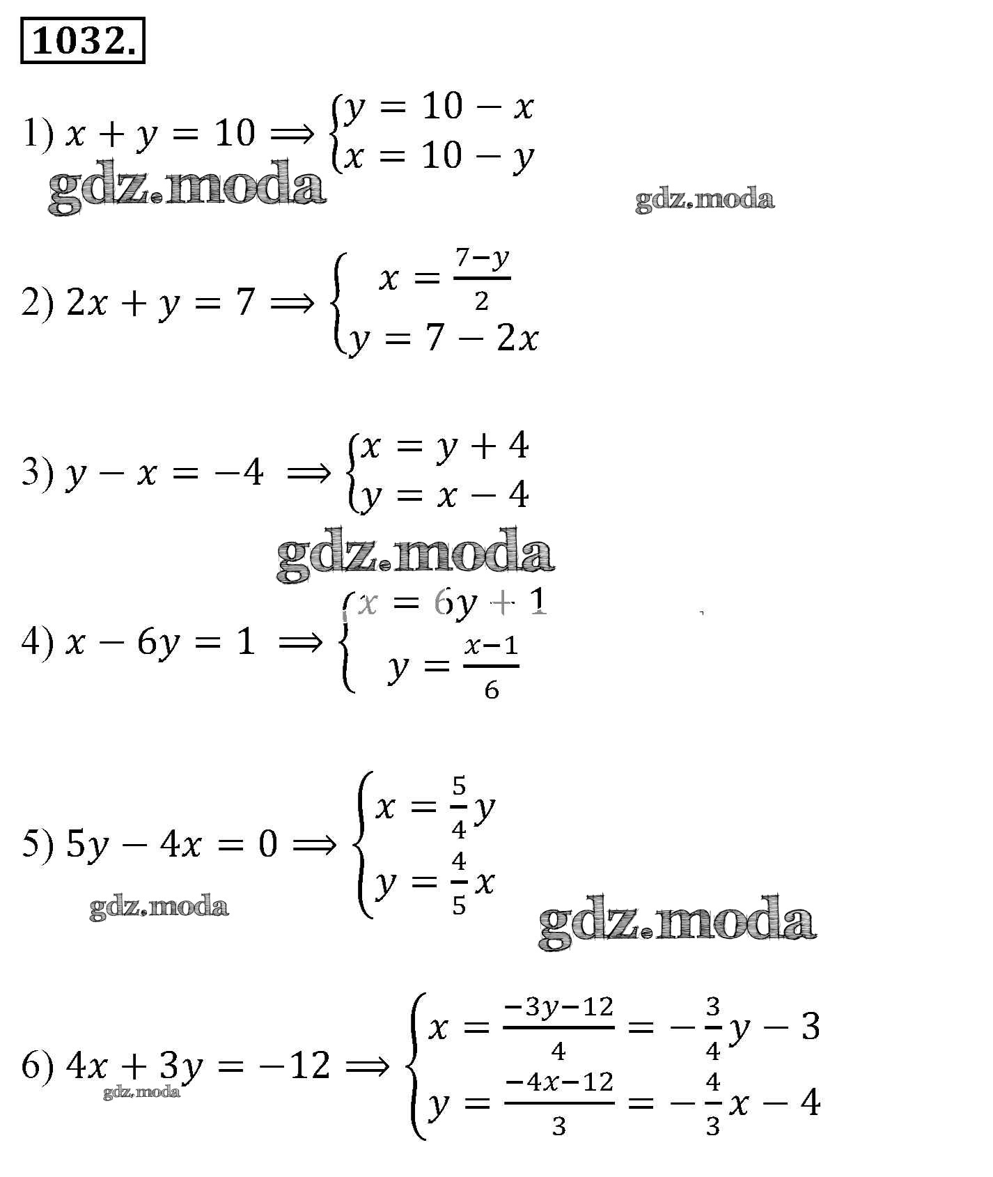 ОТВЕТ на задание № 1032 Учебник по Алгебре 7 класс Мерзляк Алгоритм успеха Базовый уровень