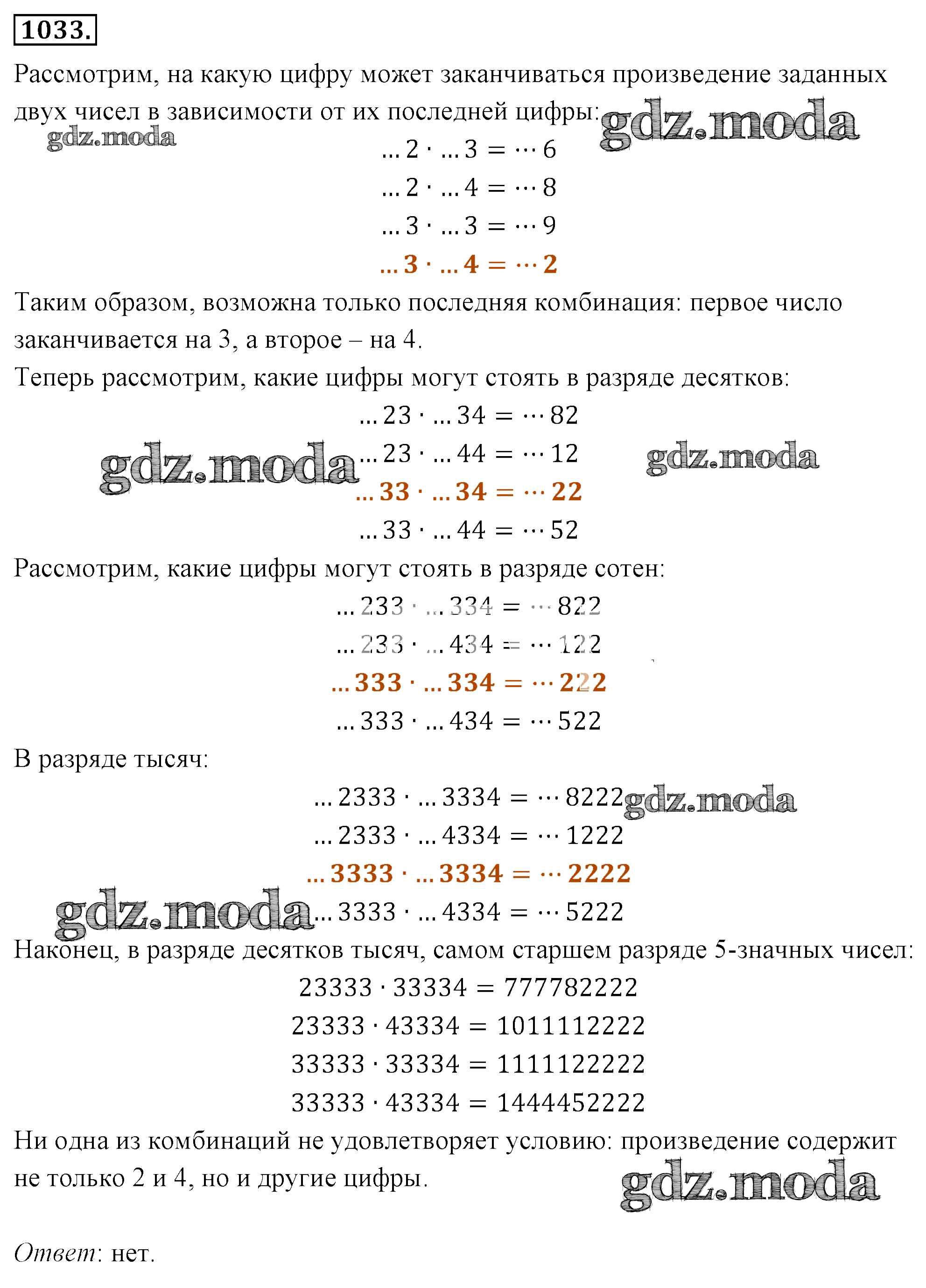 ОТВЕТ на задание № 1033 Учебник по Алгебре 7 класс Мерзляк Алгоритм успеха Базовый уровень