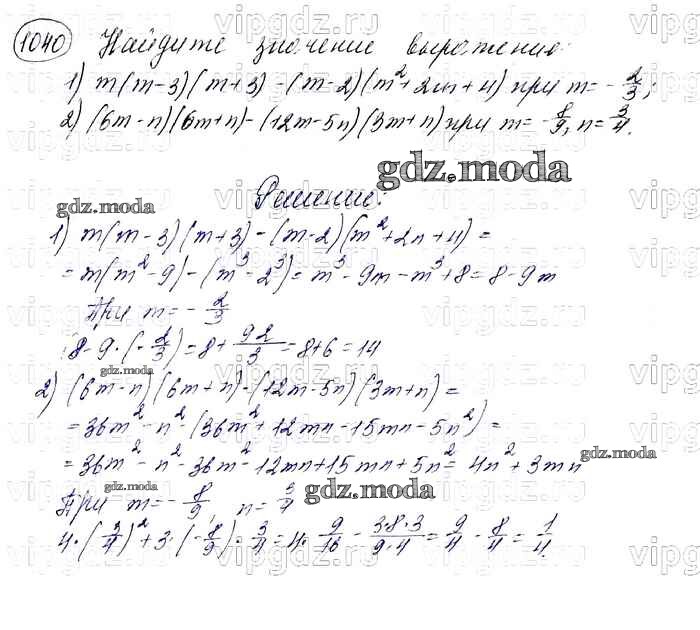 ОТВЕТ на задание № 1040 Учебник по Алгебре 7 класс Мерзляк Алгоритм успеха Базовый уровень