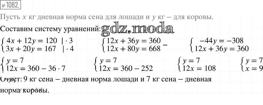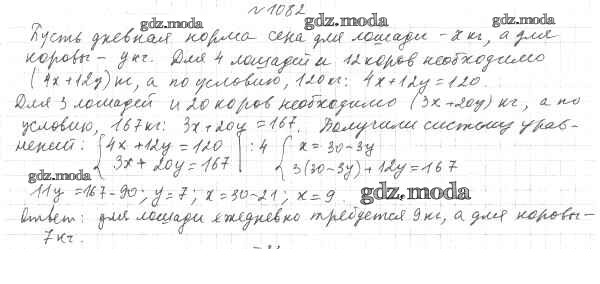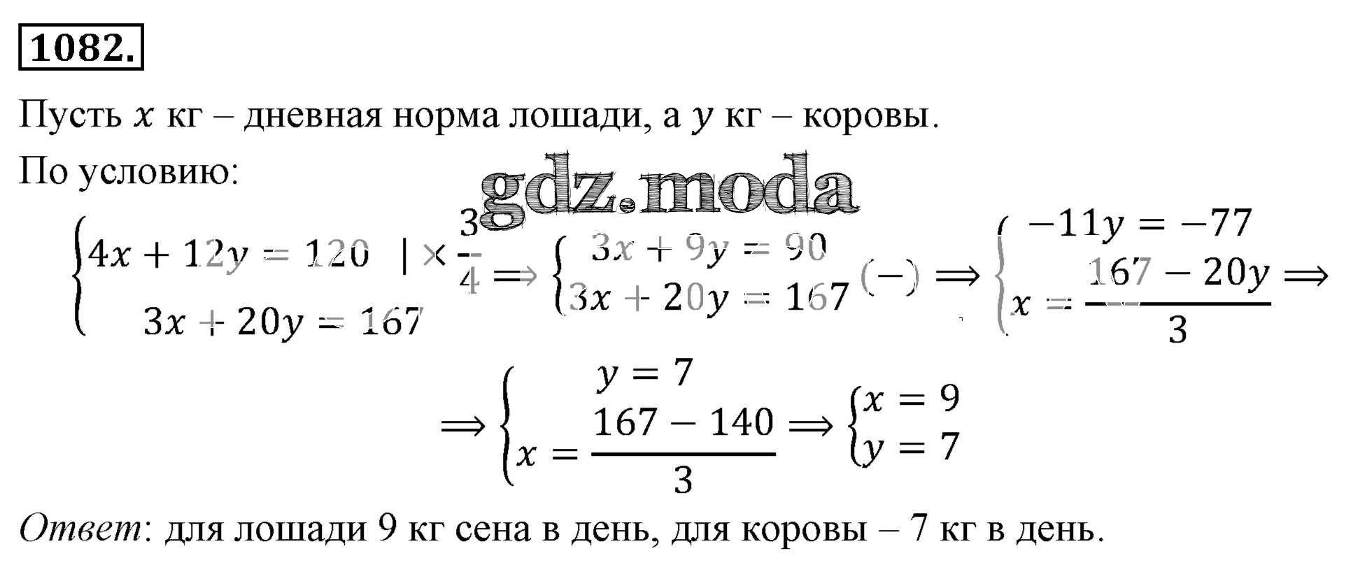 ОТВЕТ на задание № 1082 Учебник по Алгебре 7 класс Мерзляк Алгоритм успеха Базовый уровень
