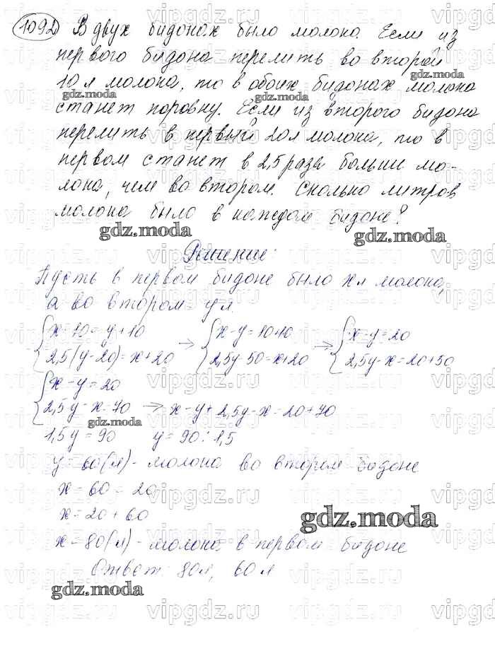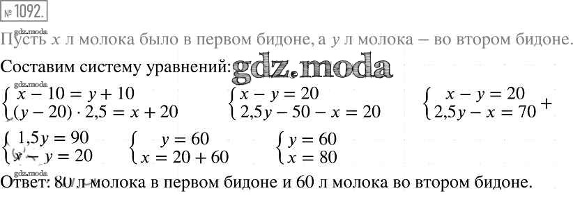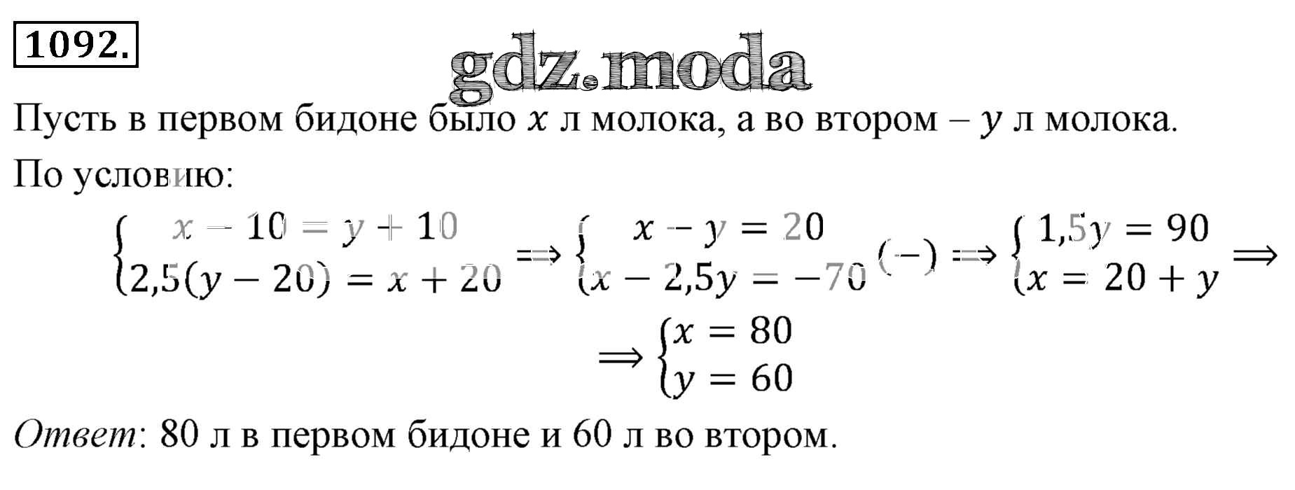 ОТВЕТ на задание № 1092 Учебник по Алгебре 7 класс Мерзляк Алгоритм успеха Базовый уровень