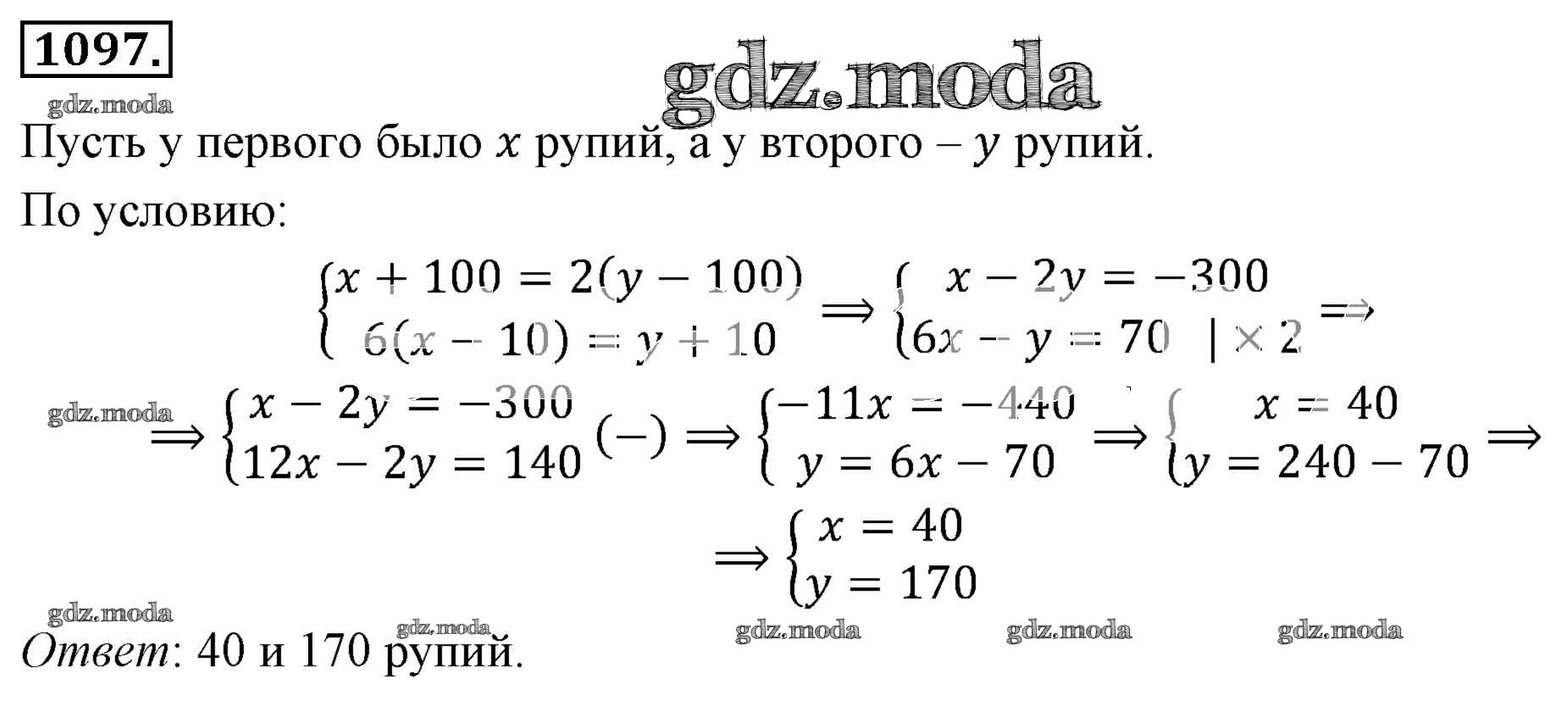 ОТВЕТ на задание № 1097 Учебник по Алгебре 7 класс Мерзляк Алгоритм успеха Базовый уровень