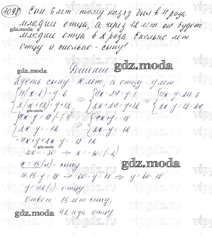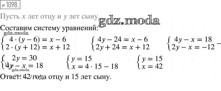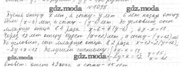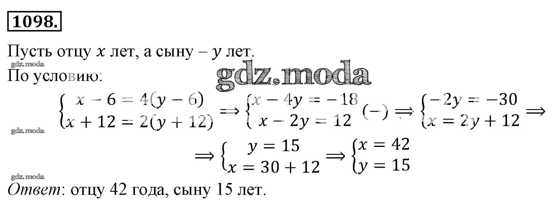ОТВЕТ на задание № 1098 Учебник по Алгебре 7 класс Мерзляк Алгоритм успеха Базовый уровень