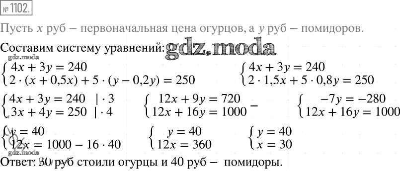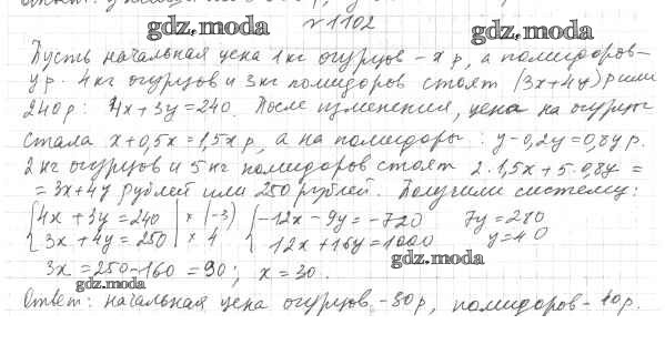 ОТВЕТ на задание № 1102 Учебник по Алгебре 7 класс Мерзляк Алгоритм успеха Базовый уровень