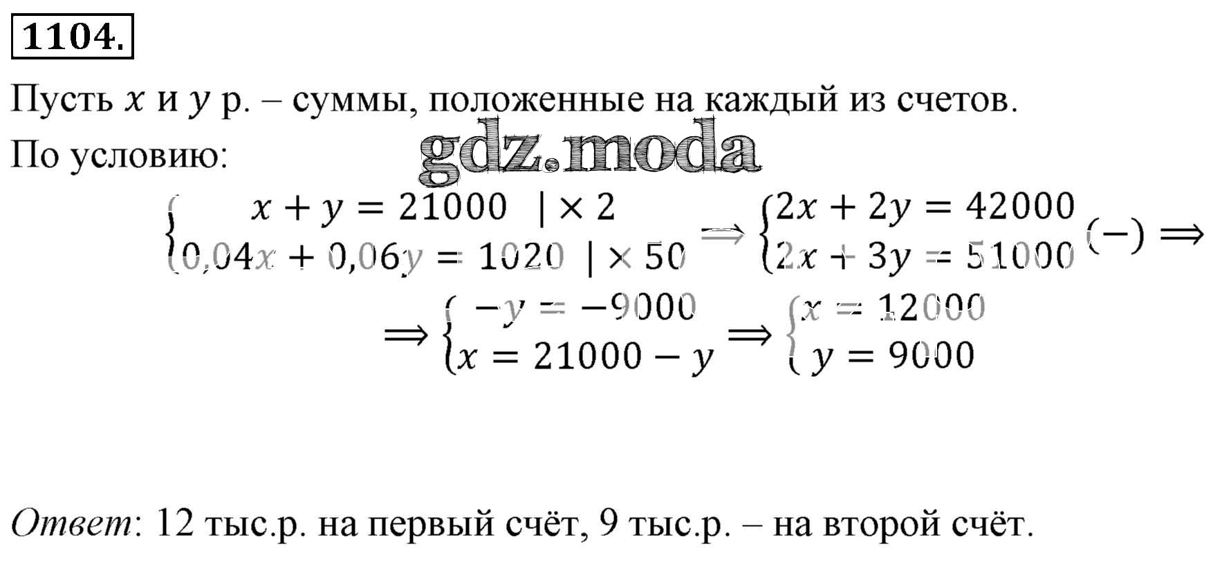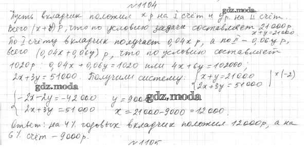 ОТВЕТ на задание № 1104 Учебник по Алгебре 7 класс Мерзляк Алгоритм успеха Базовый уровень
