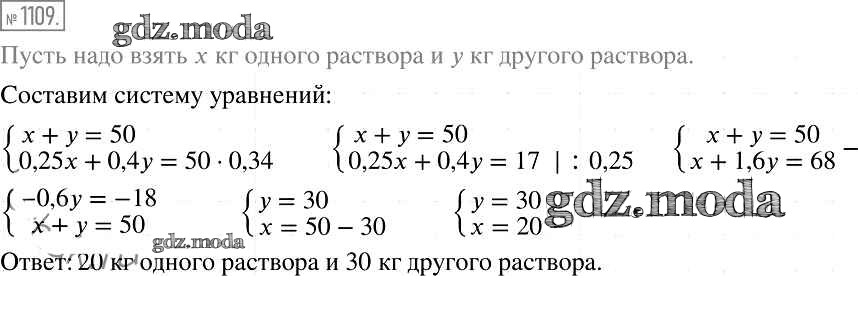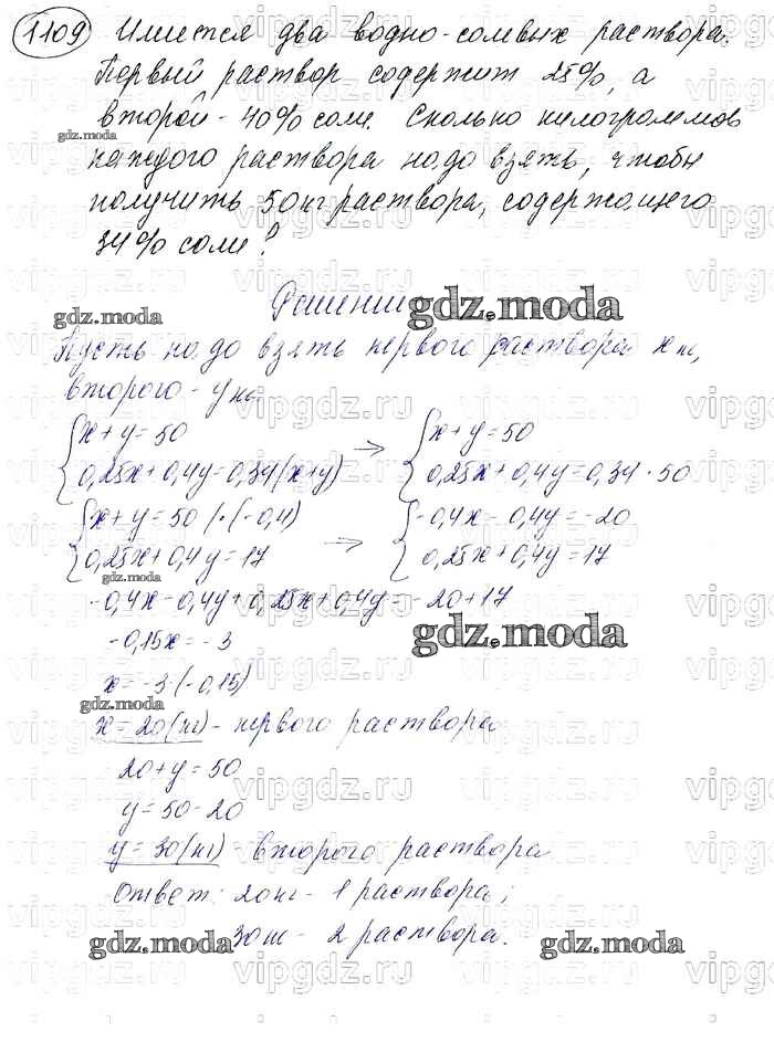 ОТВЕТ на задание № 1109 Учебник по Алгебре 7 класс Мерзляк Алгоритм успеха Базовый уровень