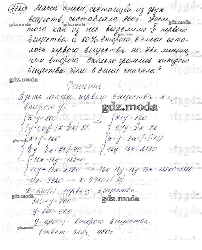ОТВЕТ на задание № 1120 Учебник по Алгебре 7 класс Мерзляк Алгоритм успеха Базовый уровень