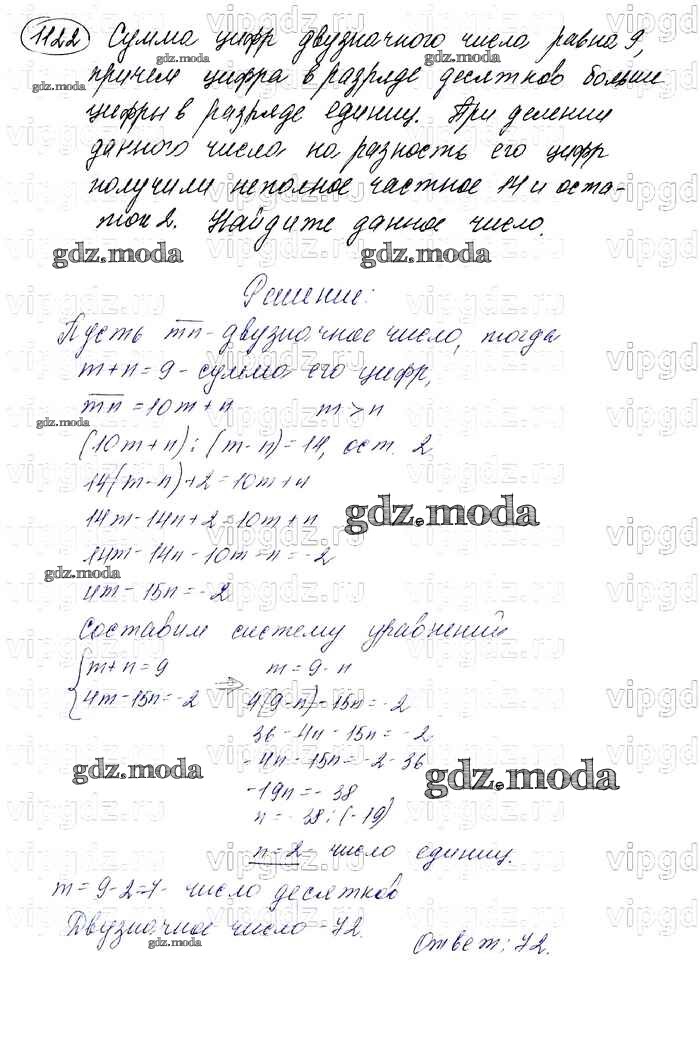 ОТВЕТ на задание № 1122 Учебник по Алгебре 7 класс Мерзляк Алгоритм успеха Базовый уровень