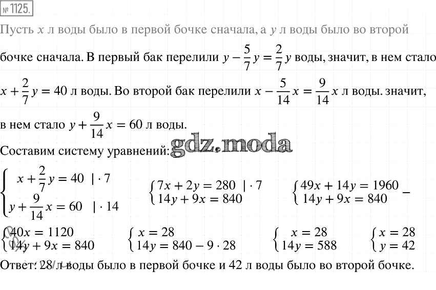 ОТВЕТ на задание № 1125 Учебник по Алгебре 7 класс Мерзляк Алгоритм успеха Базовый уровень