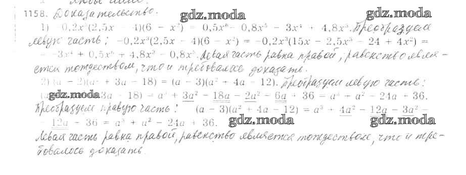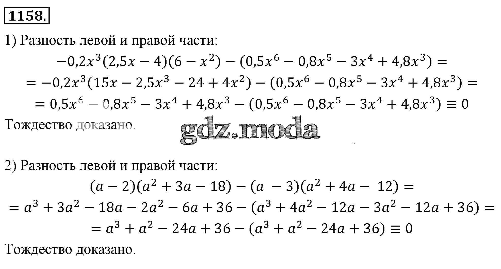 ОТВЕТ на задание № 1158 Учебник по Алгебре 7 класс Мерзляк Алгоритм успеха Базовый уровень