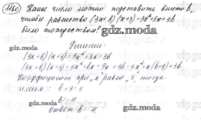 ОТВЕТ на задание № 1160 Учебник по Алгебре 7 класс Мерзляк Алгоритм успеха Базовый уровень