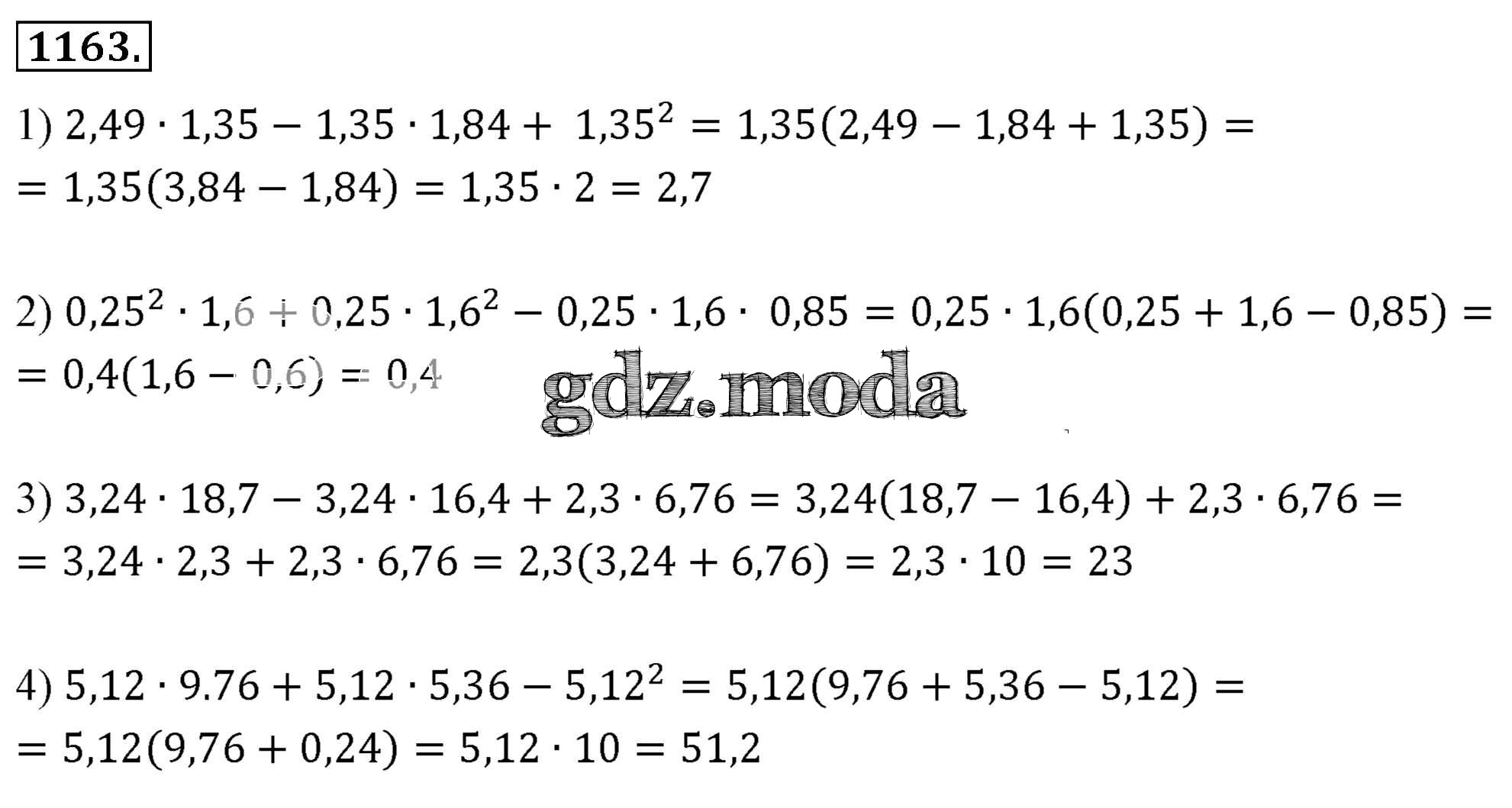 ОТВЕТ на задание № 1163 Учебник по Алгебре 7 класс Мерзляк Алгоритм успеха Базовый уровень