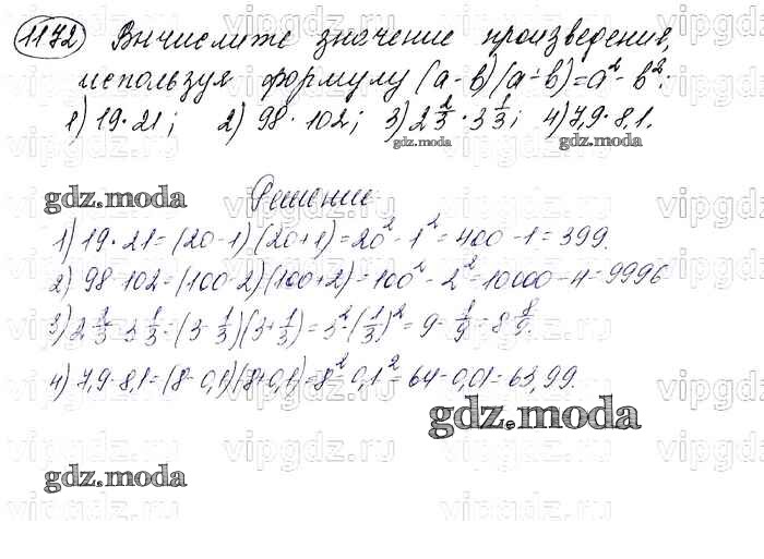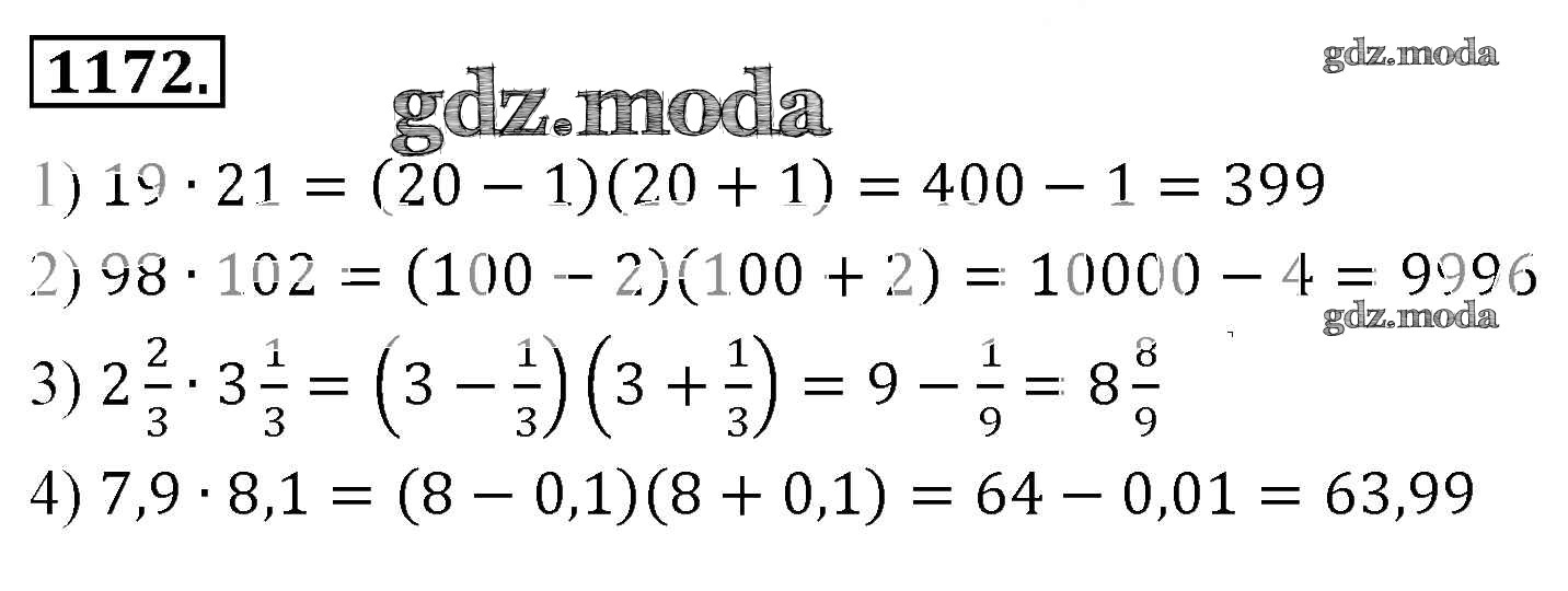 ОТВЕТ на задание № 1172 Учебник по Алгебре 7 класс Мерзляк Алгоритм успеха Базовый уровень