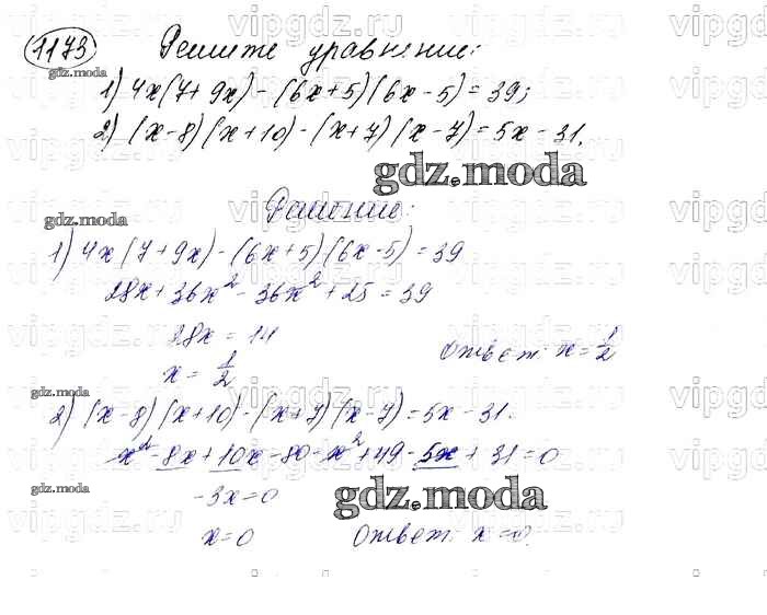 ОТВЕТ на задание № 1173 Учебник по Алгебре 7 класс Мерзляк Алгоритм успеха Базовый уровень