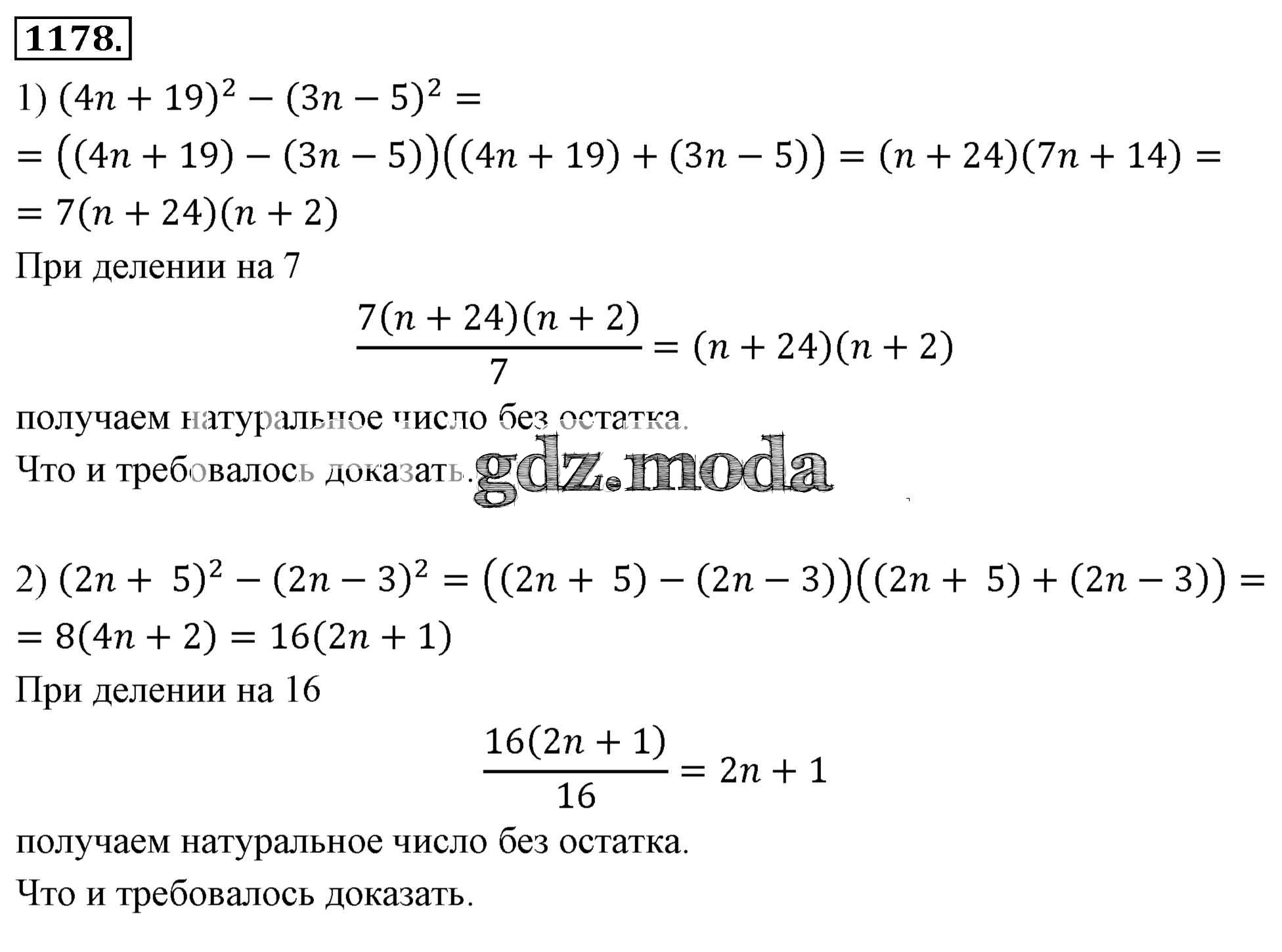 ОТВЕТ на задание № 1178 Учебник по Алгебре 7 класс Мерзляк Алгоритм успеха Базовый уровень