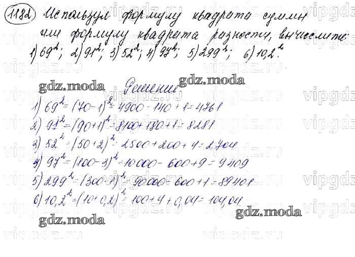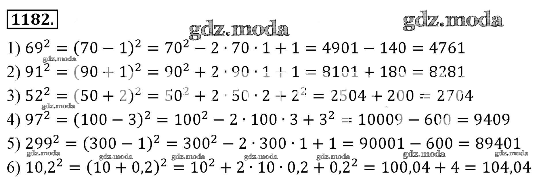 ОТВЕТ на задание № 1182 Учебник по Алгебре 7 класс Мерзляк Алгоритм успеха Базовый уровень