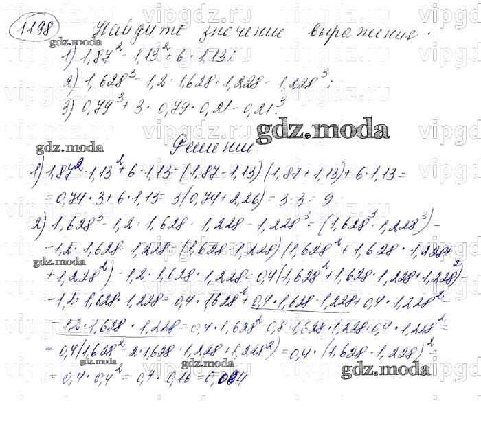 ОТВЕТ на задание № 1198 Учебник по Алгебре 7 класс Мерзляк Алгоритм успеха Базовый уровень