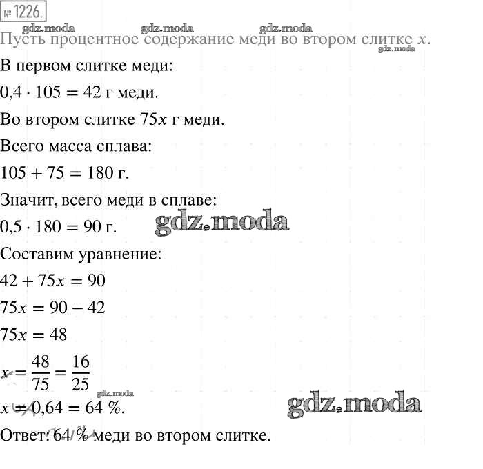 ОТВЕТ на задание № 1226 Учебник по Алгебре 7 класс Мерзляк Алгоритм успеха Базовый уровень