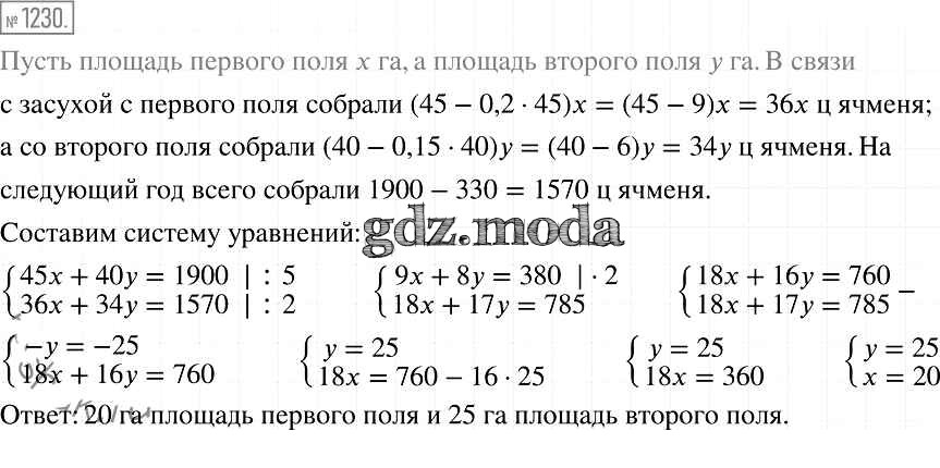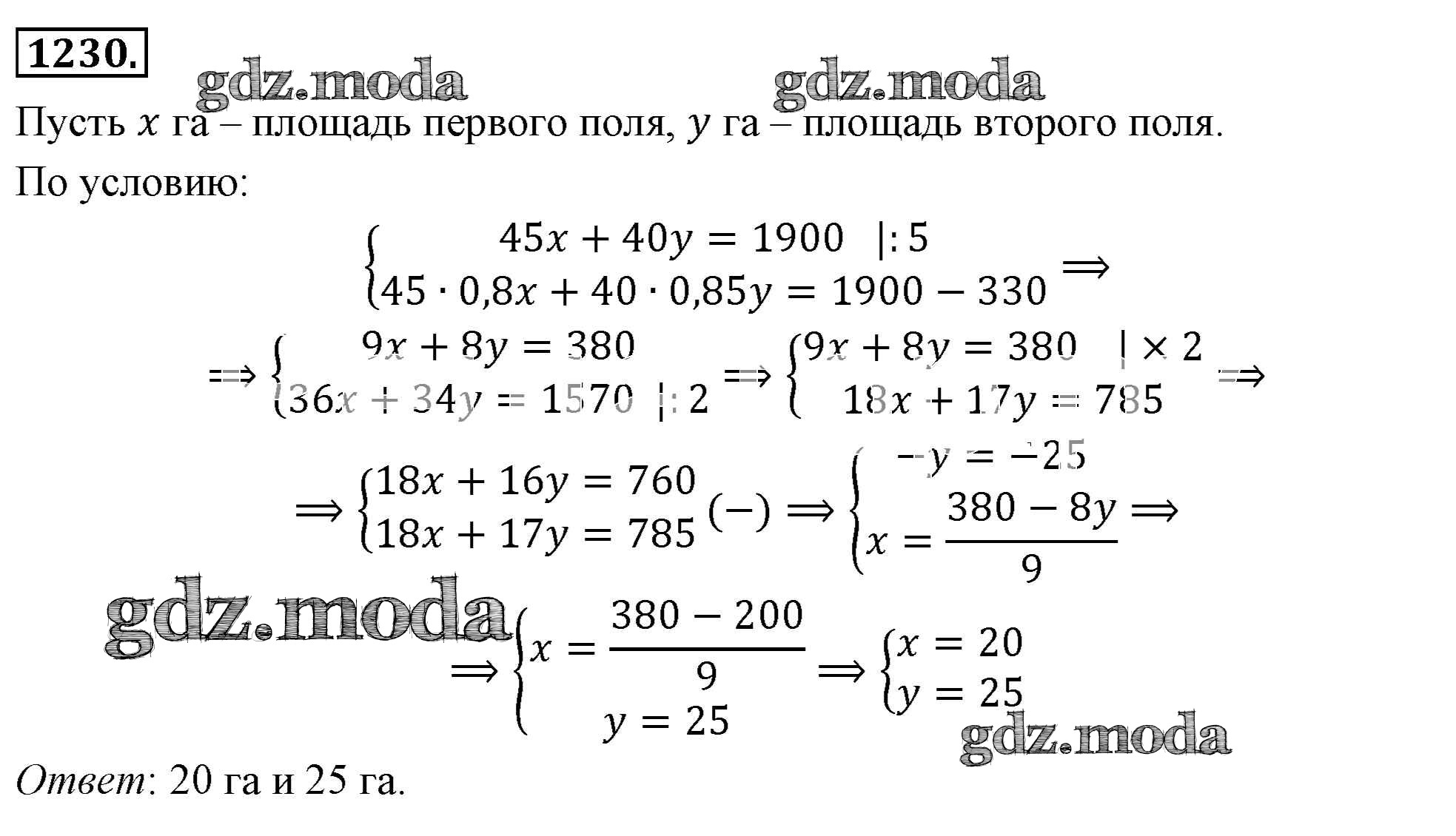 ОТВЕТ на задание № 1230 Учебник по Алгебре 7 класс Мерзляк Алгоритм успеха Базовый уровень
