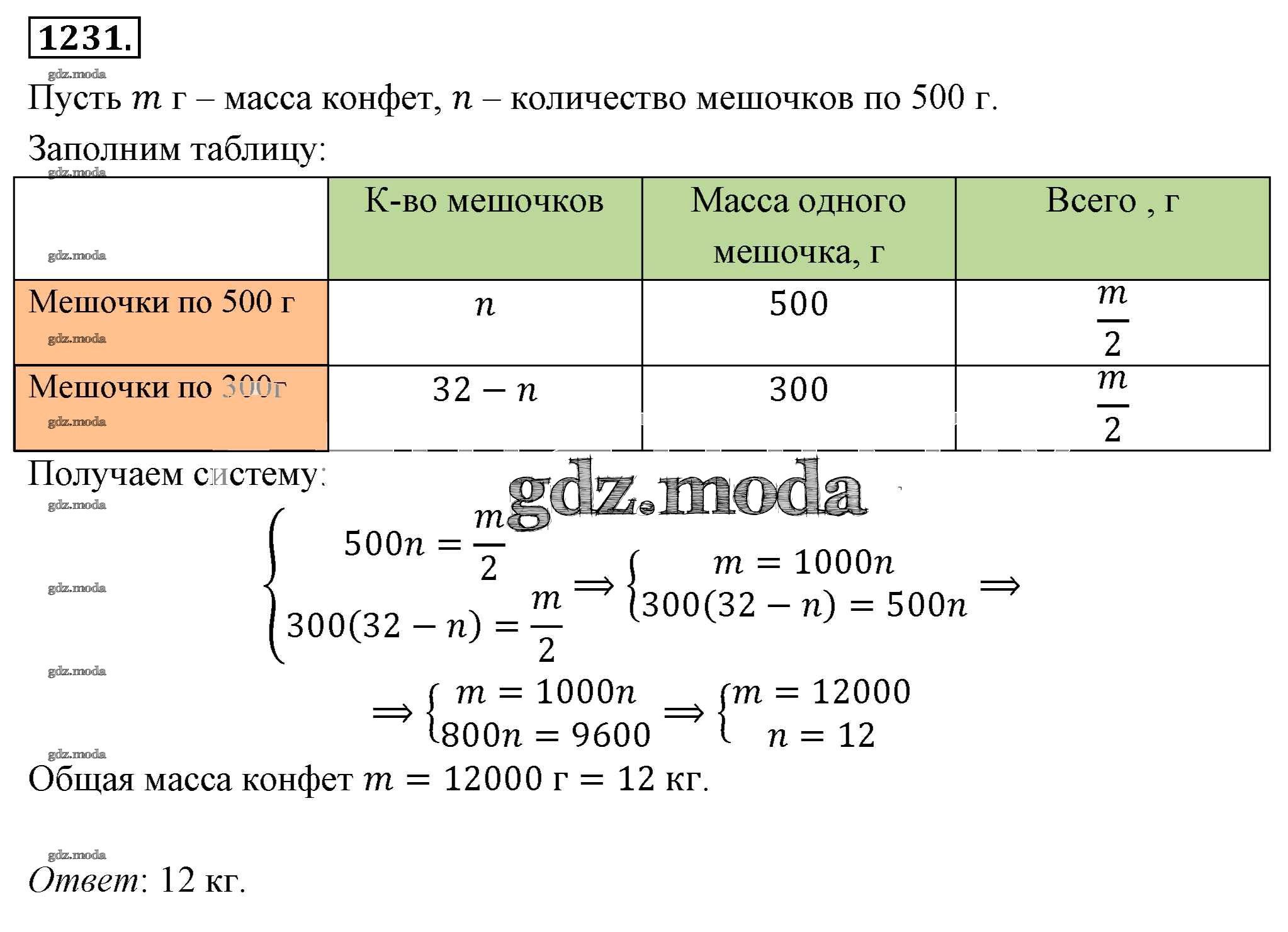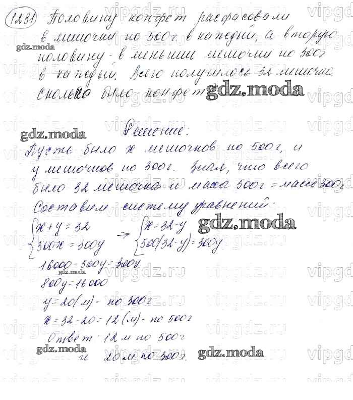 ОТВЕТ на задание № 1231 Учебник по Алгебре 7 класс Мерзляк Алгоритм успеха Базовый уровень