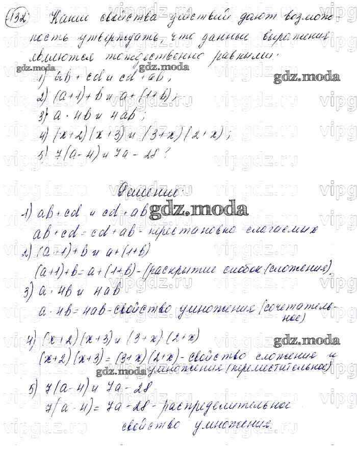 ОТВЕТ на задание № 132 Учебник по Алгебре 7 класс Мерзляк Алгоритм успеха Базовый уровень