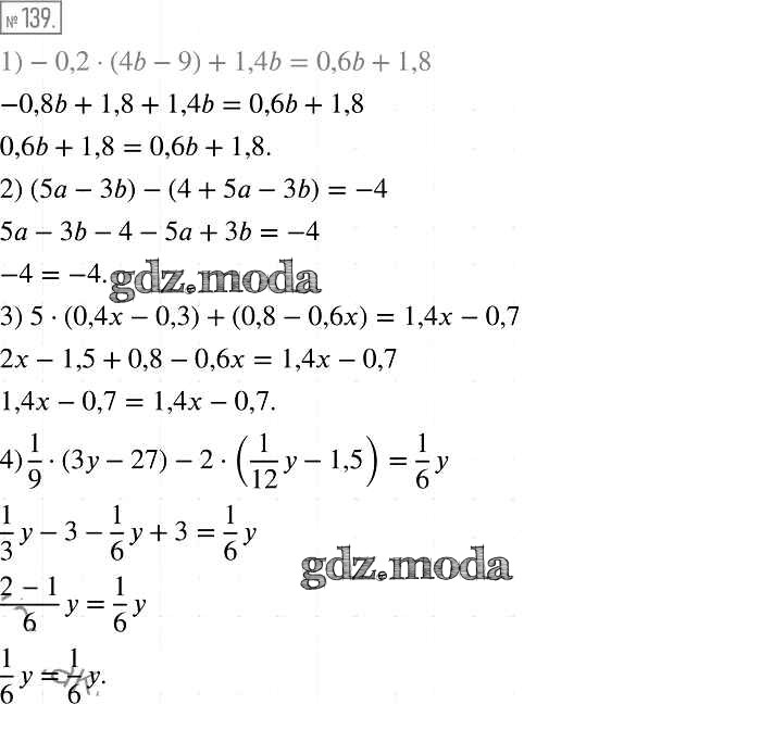 ОТВЕТ на задание № 139 Учебник по Алгебре 7 класс Мерзляк Алгоритм успеха Базовый уровень