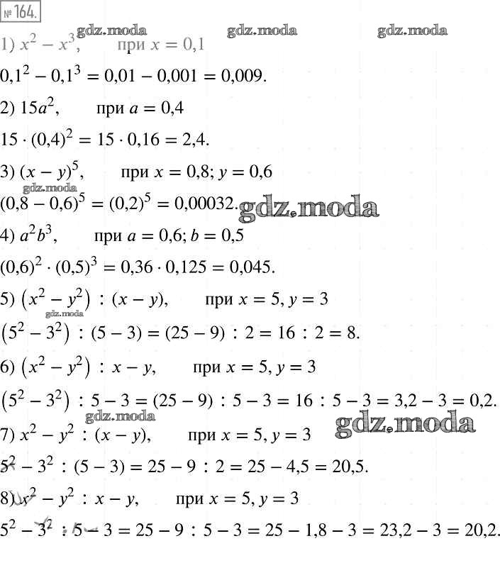 ОТВЕТ на задание № 164 Учебник по Алгебре 7 класс Мерзляк Алгоритм успеха Базовый уровень