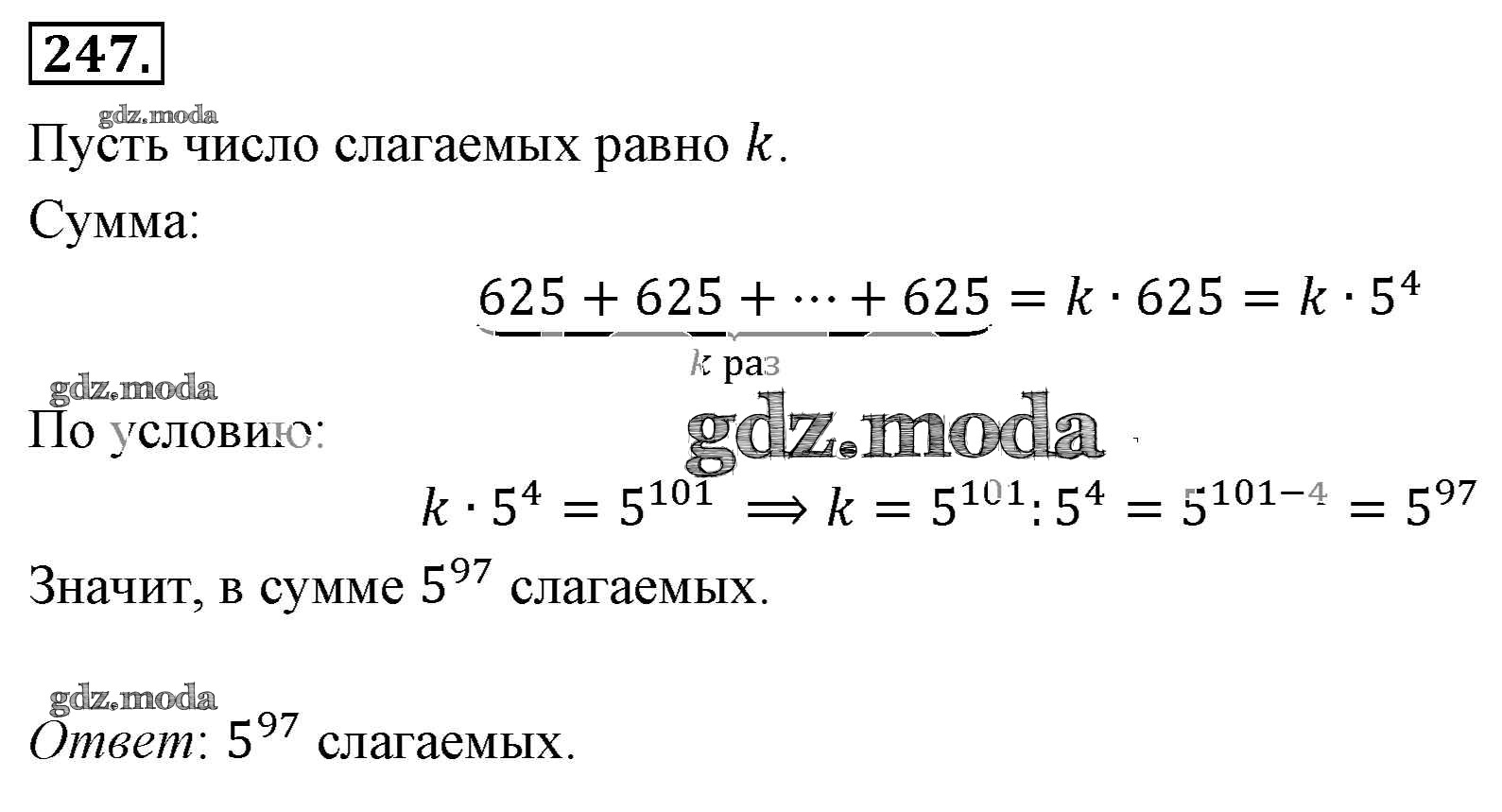 ОТВЕТ на задание № 247 Учебник по Алгебре 7 класс Мерзляк Алгоритм успеха Базовый уровень