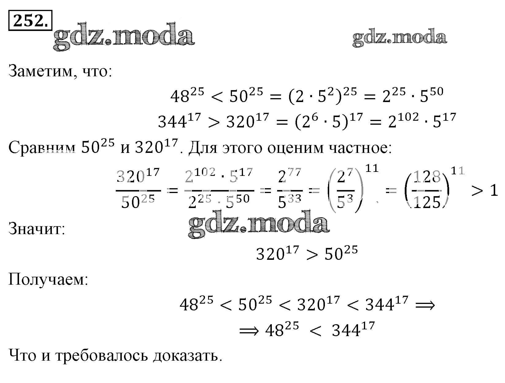 ОТВЕТ на задание № 252 Учебник по Алгебре 7 класс Мерзляк Алгоритм успеха Базовый уровень