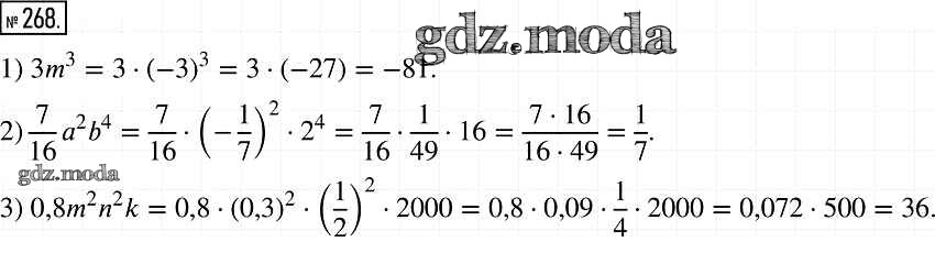 ОТВЕТ на задание № 268 Учебник по Алгебре 7 класс Мерзляк Алгоритм успеха Базовый уровень