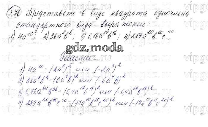 ОТВЕТ на задание № 276 Учебник по Алгебре 7 класс Мерзляк Алгоритм успеха Базовый уровень